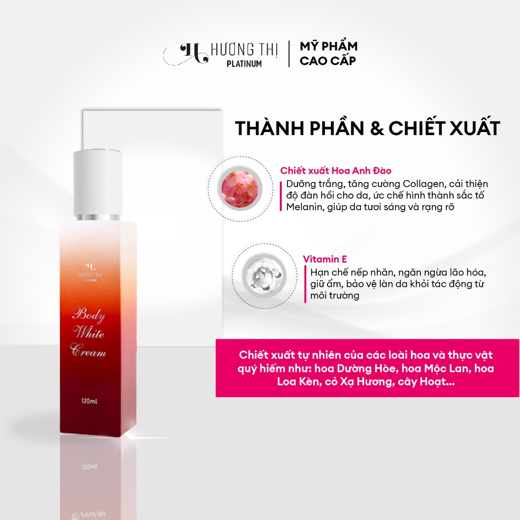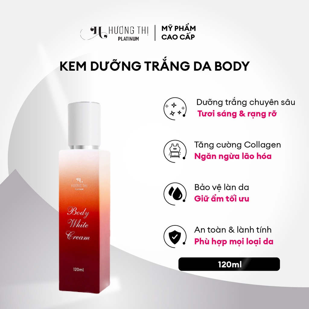 • Hương Thị Platinum là thương hiệu mỹ phẩm cao cấp được nghiên cứu và thành lập bởi nghệ sĩ Việt Hương từ năm 2018. Sử dụng nguyên liệu ngoại nhập cao cấp các do công ty hàng đầu trên Thế Giới sản xuất như Pháp, Đức ….và được điều chế dành riêng cho làn da người Việt Nam, phù hợp với khí hậu nhiệt đới cận xích đạo.
